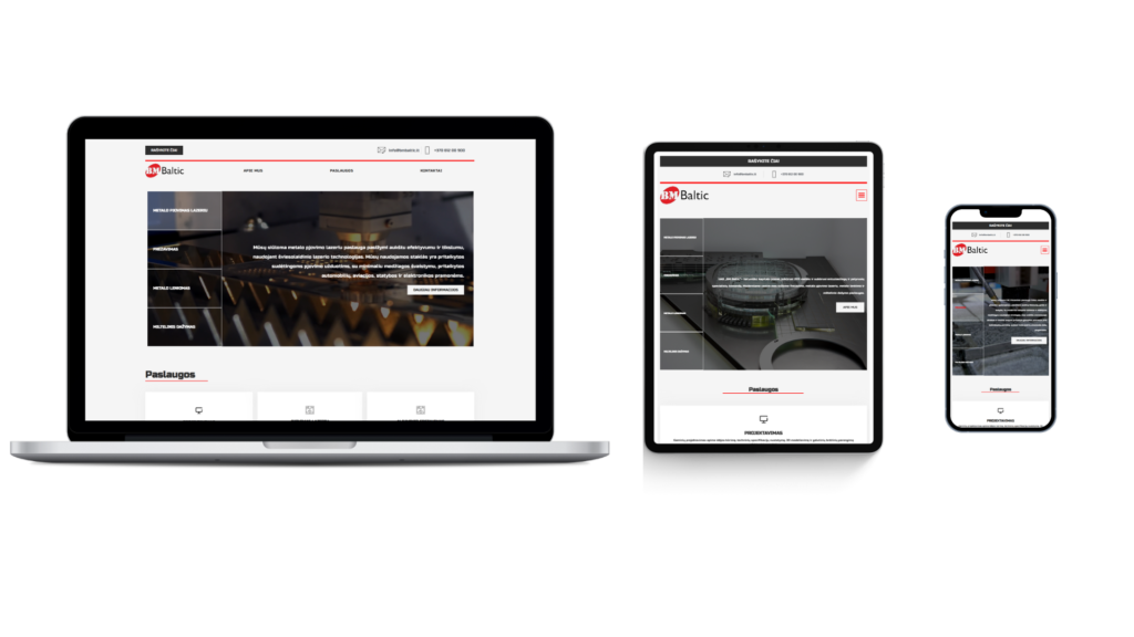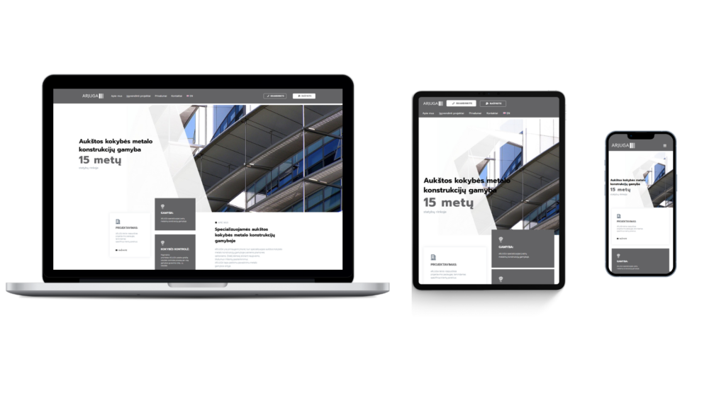 Modernus dizainas ir intuityvi navigacija užtikrina lengvą vartotojo patirtį, leidžiančią greitai rasti reikalingą informaciją ir susisiekti su įmone dėl konsultacijos ar užsakymų.
