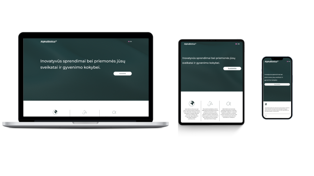 Svetainė „alphabiotica.lt“ buvo sukurta kaip informacinė platforma, pristatanti sveikatingumo produktus ir sprendimus. Pagrindinis dėmesys skiriamas greitiesiems medicininiams testams, maisto alergenų analizės paslaugoms ir maisto papildų asortimentui. Aiški svetainės struktūra leidžia vartotojams patogiai rasti informaciją, o minimalistinis dizainas sustiprina profesionalumo įspūdį.