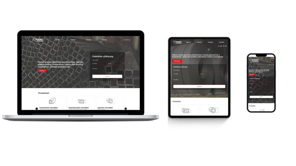 Dirbant prie „zevert-steel.lt“ svetainės pagrindinis tikslas buvo sukurti informatyvią ir patogią platformą, pristatančią įmonės daugiau nei 25 metų patirtį juodųjų ir spalvotųjų metalų pardavime. Svetainėje lankytojai gali susipažinti su plačiu metalo gaminių asortimentu, įskaitant kvadratinius, stačiakampius ir apvalius vamzdžius, plieno juostas, lakštinį plieną bei kitus profilius.